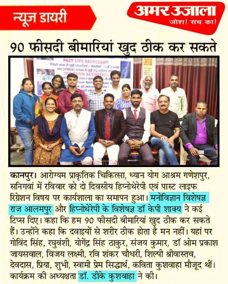 हिप्नोथेरेपिस्ट व माइण्ड ट्रेनर बनने का सुनहरा अवसर आपके लिये